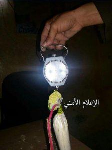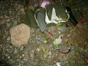 وأكد مصدر امني أنه أثناء تفتيش السيارة تم العثور على حزام ناسف مركب في جعبة وثلاث خزنات سلاح نوع” آلي” (كلاكشنكوف) محشوة بمواد متفجرة وموصلة ببطارية 9 فولت وأسلاك وتحتوي كل خزنة على كيس بلاستيكي شفاف وبداخله مسحوق متفجر.