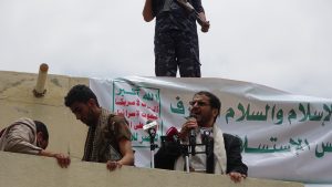 وأعلن أمين عام الملتقى الإسلامي عدم التراجع عن أهداف الثورة ولا عن الوصول لتحقيقها حيث قال : نعلن في هذه الساحة أننا لن نتراجع عن اهداف ثورتنا ولاعن وصولنا لتحقيق العدالة ورفض الهيمنة وإخراج الشعب عن الوصاية الدولية والإقليمية وعن الوصاية الأمريكي الإسرائيلية والسعودية، مؤكدا أن الشعب اليمني حر أبي لا يقبل بأي طريقة الهمجية والتبعية أو الارتهان للخارج .