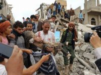 وكان طيران تحالف العدوان ارتكب مجزرة في حق المدنيين، أمس الأول، حيث استدف فندقا شعبيا في قرية بيت العذري بمديرية أرحب شمال محافظة صنعاء ما أدى إلى استشهاد 46 مدنيا وإصابة العشرات بجراح.
