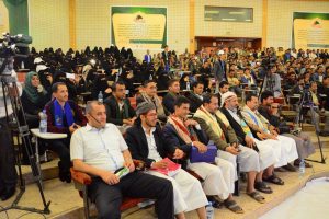 استمر مهرجان الرسول الأعظم لليوم الخامس على التوالي في تقديم فقراته المسابقاتية والثقافية بمناسبة ذكرى المولد النبوي الشريف في جامعية صنعاء كلية الشريعة والقانون بقاعة الشهيد | أحمد شرف الدين برعاية مؤسسة الإمام الهادي والتعاون مع ملتقى الطالب الجامعي ،