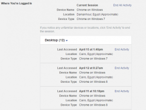 إذا لاحظت في هذه القائمة نشاط غريب قم بإختيار End all activity فورًا ثم قم بتغيير كلمة المرور.