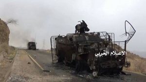 وأظهرت المشاهد عملية استدراج نوعية لأربع مدرعات تقل عسكريين إماراتيين، ظنوا أن الطريق سالكة للوصول إلى مواقع الجيش واللجان الشعبية في مفرق موزع غربي تعز.