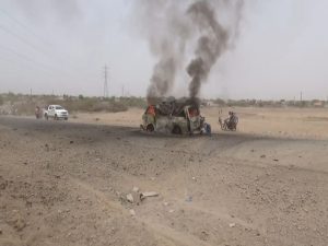 وأوضح مصدر أمني بالمحافظة أن طيران العدوان استهدف بغارة حافلة تقل نازحين في الخط الرابط بين مديريتي الجراحي وزبيد ما أدى إلى استشهاد وإصابة 20 مواطنا.