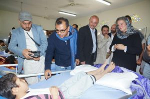زارت ممثلة الأمم المتحدة لتنسيق الشؤون الإنسانية في اليمن ليز غراندي جرحى مجزرة طلاب ضحيان بمحافظة صعدة.