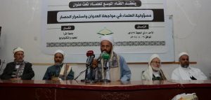 علماء اليمن :يستنكرون الصمت الدولي أمام الجرائم الفظيعة للعدوان السعودي الأمريكي بحق الشعب اليمني يحملون مجلس الأمن المسؤلية “صور”