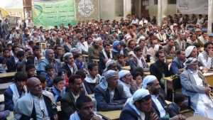 وأشار النعمي إلى الإنقلاب الكبير الذي حصل بعد موت رسول الله ص على الإسلام وتعاليمه وما أفرزه ذلك من انحراف الأمة وابتعادها عن دين الله كما قال : أن من أسباب ما يجري على اليمنيين من حرب وظلم من قبل قوى الصهاينة وأذنابهم هو بسبب ولائهم للإمام علي وأهل بيته وبسبب رفضهم للظلم والاستكبار ولكن النصر قريب كما وعد من الله بنصر من يوالي الإمام علي وينصره وما ثبات المجاهدين في الجبهات لمدة أربع سنوات إلا دليل على ذلك وبركة من بركات الولاء للإمام علي عليه السلام .