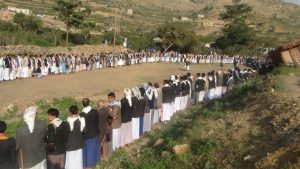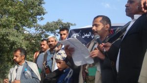 نظم أبناء الجبل الأعلى في مديرية /المفتاح، محافظة /حجة “وقفة إحتجاجية” عصر الجمعة 2018/11/2م إستنكارا لما يرتكبه العدوان السعودي الأمريكي من مجازر يومية وحرب إقتصادية،وحصار وتجويع بحق هذا الشعب العظيم ، وتأكيدا على مواصلة الصمود والنفير إلى الجبهات ودعم المجاهدين بالمال والرجال .