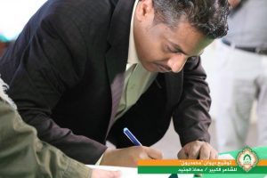 دشنت مؤسسة الإمام الهادي اليوم افتتاح مهرجان الرسول الأعظم السنوي فعالياتها بتوقيع ديوان الشاعر الكبير معاذ الجنيد الذي حمل عنوان “محمديون” بجامعة صنعاء قاعة الشهيد البرفسور / أحمد شرف الدين .