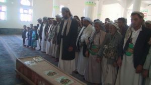 وقد ووري جثمانه الطاهر الثرى بروضة الشهداء بمديرية المفتاح عزلة علكمة