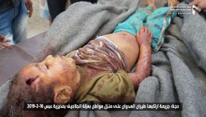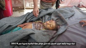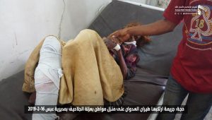 وأفاد مضدر محلي في المحافظة باستشهاد طفل وإصابة امرأتين وطفل إثر غارة لطيران العدوان استهدفت منزلهم جنوب منطقة بني حسن بمديرية عبس.