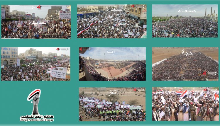 اليمن يقتحم العام الخامس من العدوان بمسيرات مليونية في عدة محافظات ” صور