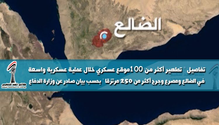 تفاصيل ” تطهير أكثر من 100موقع عسكري خلال عملية عسكرية واسعة في الضالع ومصرع وجرح أكثر من 250 مرتزقا ” بحسب بيان صادر عن وزارة الدفاع