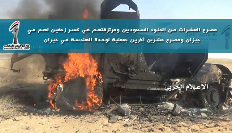 مصرع العشرات من الجنود السعوديين ومرتزقتهم في كسر زحفين لهم في جيزان ومصرع عشرين أخرين بعملية لوحدة الهندسة في حيران
