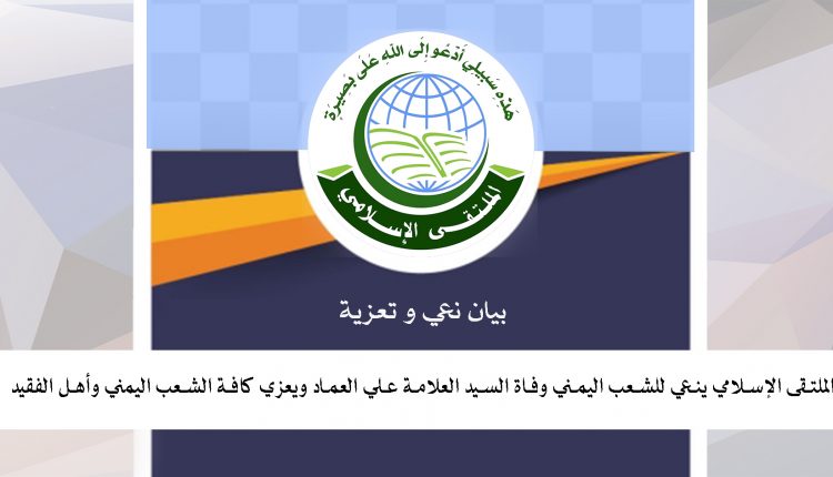 الملتقى الإسلامي ينعي للشعب اليمني وفاة السيد العلامة علي بن يحيى العماد ويعزي كافة الشعب اليمني وأهل الفقيد ” بيان