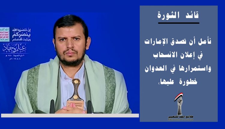 قائد الثورة ” نأمل أن تصدق الإمارات في إعلان الانسحاب واستمرارها في العدوان خطورة عليها”