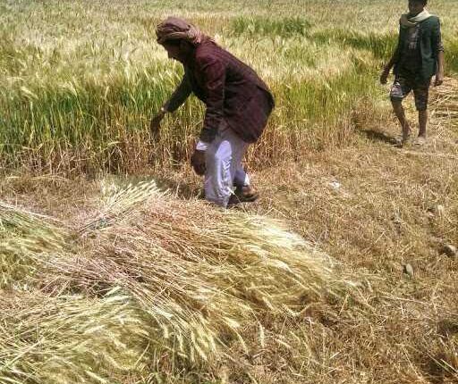 الجوف – مؤسسة الشعب تدشن موسم الحصاد الأول للقمح والفواكه والخضروات